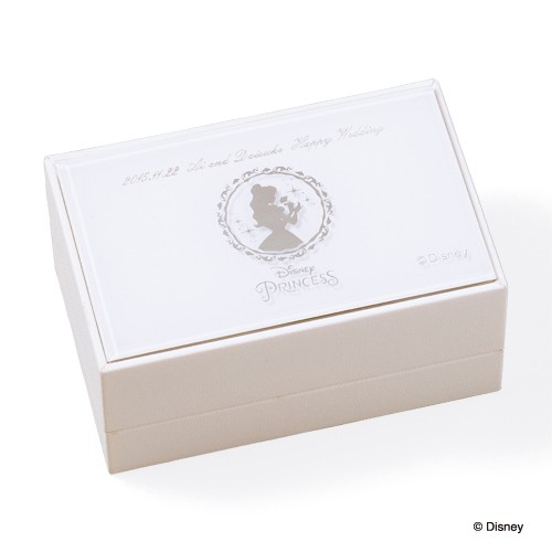 ベルのドレスのドレープをイメージした緩やかなウェーブを描くデザインです。 - 美女と野獣の物語のキーとなるダイヤモンドが入ったバラのモチーフが輝き、内側にもバラが彫られています。