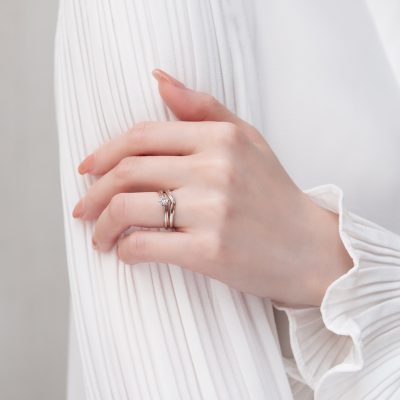 指の流れに沿ったゴールドの輝きは、光が射し込む様子を表現。“ふたりの未来を明るく照らしますように…”