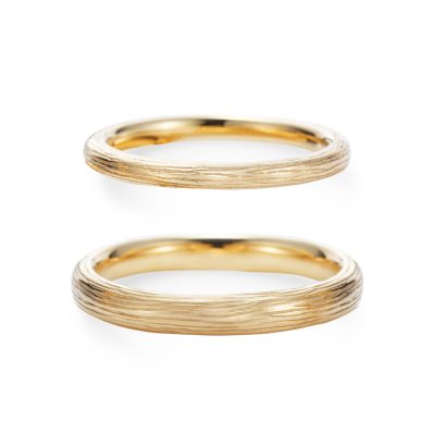 シンプルな甲丸のリングに樹木をイメージしたテクスチャーを施したデザイン。