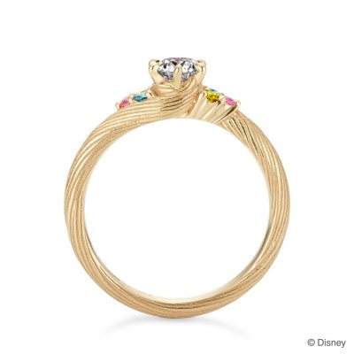 - 髪の毛をモチーフにした繊細なテクスチャーが美しいデザイン。映画の世界観を思わせる3石の色合いが、指元に華を添えます。ダイヤモンドの下には太陽のモチーフも。