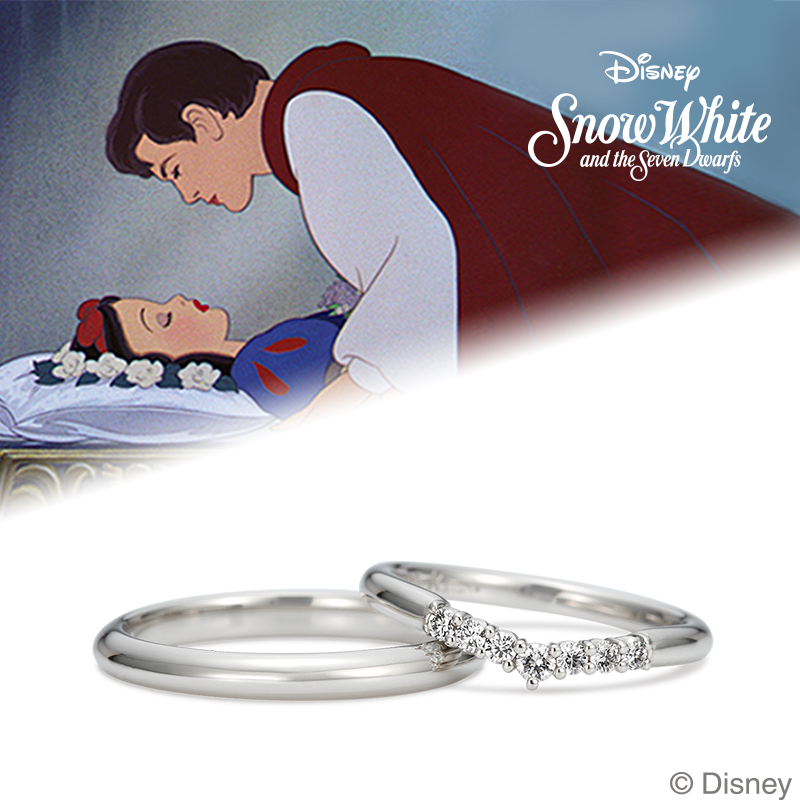 - 七人のこびとをイメージした7つのメレダイヤ。まるでふたりのもとへ幸せを運んでくれるよう。