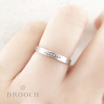 マット処理が施されたアームに、ポリッシュのグルーヴがひかれたエレガントなマリッジリング。優美な印象を決定づける強弱をつけた優美なライン。レディースリングには、ポリッシュが幅広になった箇所にストーンを集合させ、溢れ出す輝きと透明感を実現しています。