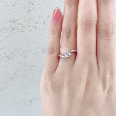 ウエーブラインが美しいハートシェープカットダイヤモンドを使用した婚約指輪(エンゲージリング)。