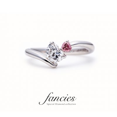 ハート型にカットされたイエローダイヤモンドを引き立てるように
