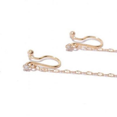 揺れるたびにきらめくチェーンと、極小サイズのダイヤモンドが上品な印象を与えるクリップイヤリング。
