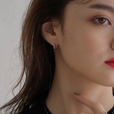 トレンドのフープピアスを上品に大人っぽく取り入れることができます。