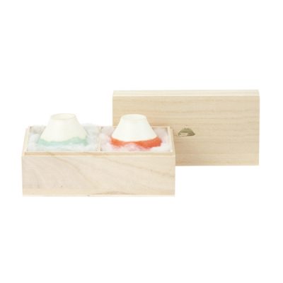 2個セットのみ盃を富士山に見立てたロゴが金箔押しされた桐箱に入れてお届けいたします。