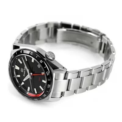 ヘアライン仕上げを主体としたケースとセラミックス製の24時間表示ベゼルの組み合わせが、機能美という言葉にふさわしいGMTウオッチです。