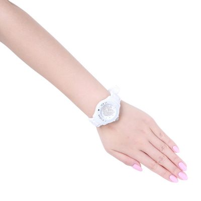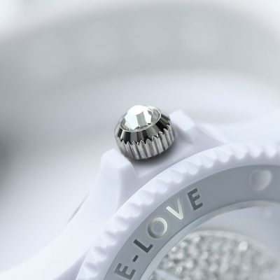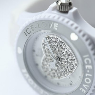 - 「アイスラブ」は2009年に発売以降数年もの間、常に人気だった名作のひとつ。キラキラと輝くスワロフスキークリスタルを盤面にハート型にトッピングしている大胆・煌びやかなデザインで、ストーンの放つ上品な輝きとハートが表現する可愛らしさが相まった絶妙なバランス。ベルトには柔らかなシリコンラバーを採用し軽量でストレスフリーな付け心地を兼ね備えます。スモールサイズ、ホワイトとブラックの2色展開。