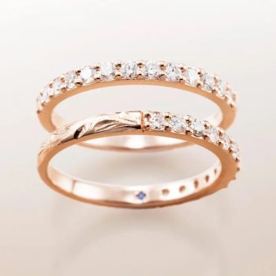 ピンクゴールドの柔らかな輝きがダイヤモンドの美しさを引き立て、エタニティリングならではの永遠の愛の象徴が込められています。重ね付けにも最適で、婚約指輪や結婚指輪として、またアニバーサリージュエリーとしても人気です。特別な記念日にぴったりなリングです。