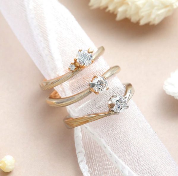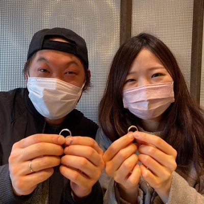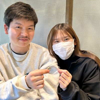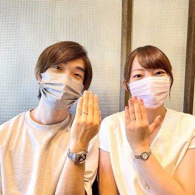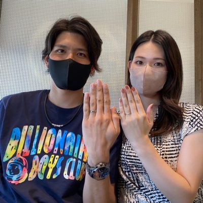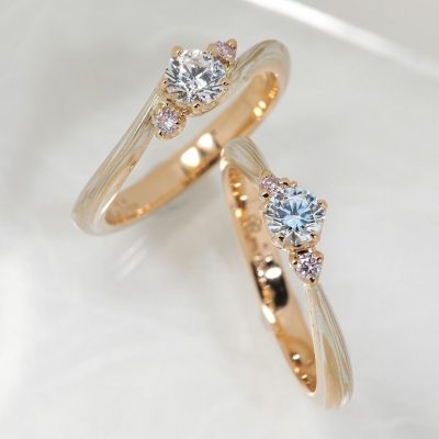 杢目金屋でこだわりをたくさん詰め込んでいただいたカップルの婚約指輪と結婚指輪