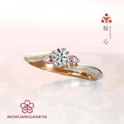出逢った頃のほのかな恋心を色づき始めた桜に見立てた婚約指輪。