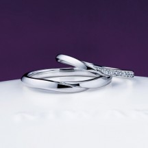 ふたりに降りそそぐやわらかな陽射しがせせらぎに輝く情景をデザイン。揺らめく水面に輝く光を、動きのあるラインとダイアモンドで表現しています。
