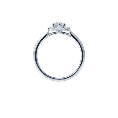 ダイヤモンドを留めるスズランの花の様な石座の形は、可憐に咲くすずらんの様で丸くて可愛いです。