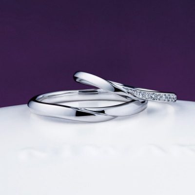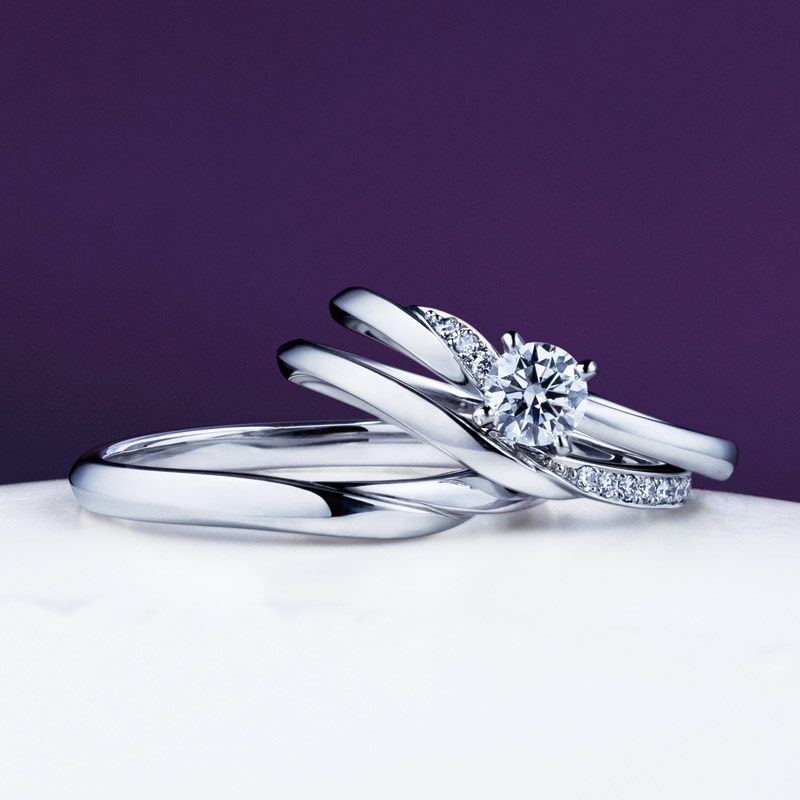 - リングの緩やかなカーブは未来へと続く川の流れを、ダイアモンドは水面の輝きを表現。清らかな水の音のように穏やかな人生を歩むふたりをイメージしています。
