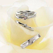 - 「純粋な心・信頼・優しさ」といった睡蓮の花言葉に想いを託しています。エンゲージメントリングは、純粋な気持ちを表すダイアモンドを、大切に包み込んでいる様子を表現しています。ウェディングリングは、清らかな水面がふたりの愛という花をいつまでも輝かせるように願いが込められています。