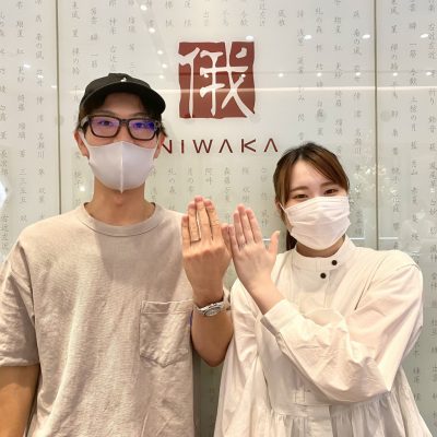 にわか睡蓮の婚約指輪はダイヤモンドの輝きを引き立てるシンプルな1石デザインがかわいいです。そして、左手の薬指に着けて、横から見つめると、睡蓮の花びらの模様が見えるんですよ。レディスの結婚指輪はダイヤモンドの輝きが花嫁の目にだけたくさん飛び込んでくる特別なデザインです。是非店頭で見てみてください。