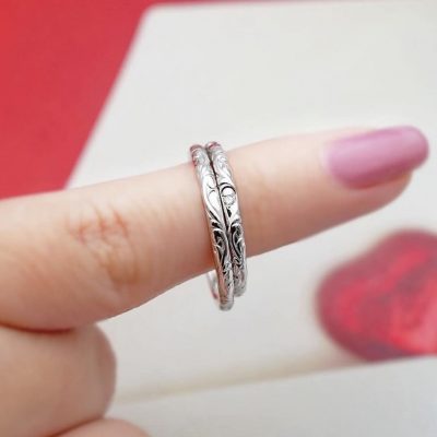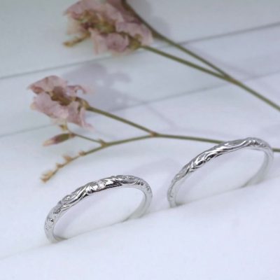 2本合わせると浮かび上がるハートがかわいい結婚指輪です。