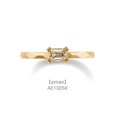 - 細身のマットゴールドのアームにバゲットカットダイヤの静かな輝きが魅力の結婚指輪。