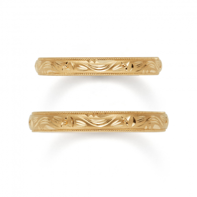 爪のないレール留めデザインで日常使いでも邪魔にならない結婚指輪です。