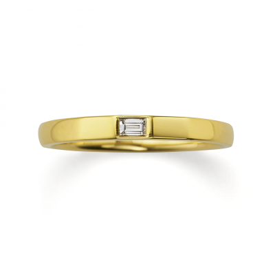 ほどよく角のある細身のデザインにバゲットカットダイヤがアクセントになった結婚指輪。
