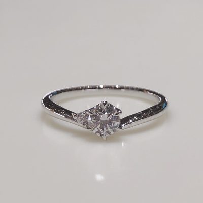 BROOCH 婚約指輪 エンゲージリング 片側メレダイヤシンプルV字ライン