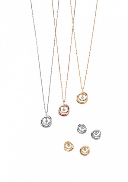 立体的に重なるサークルの中でダイヤが輝くスタイリッシュなデザイン。