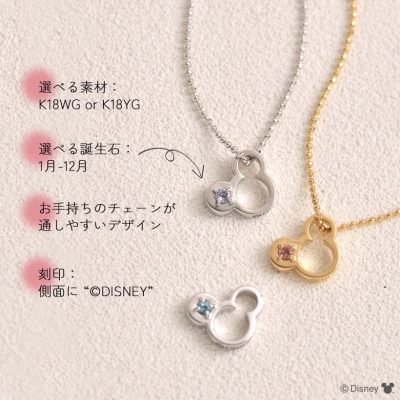 ミッキーの可愛いお耳には、誕生石をひと粒セッティングしています