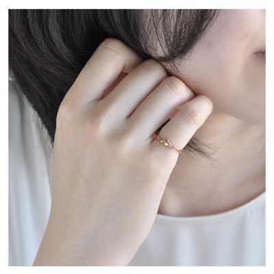 - ちょっとした仕草のたびに目を引く、愛らしいハートモチーフのピンキーリング。