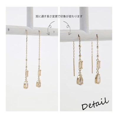 大粒のホワイトトパーズのペアシェイプが美しく揺れて優しく輝き、女性らしいエレガントさと同時にフレッシュなさわやかさを感じさせてくれます。
