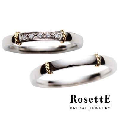 メンズ、レディース共に、二人の想いが結ばれた絆をゴールドのラインで表現した結婚指輪。