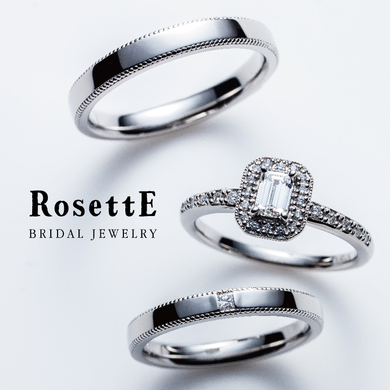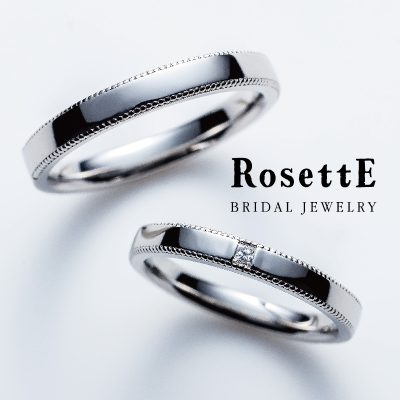 メンズリング、レディースリング共にミルグレインが施されており、二人の幸せは一生折り重なっていく様子を表した結婚指輪。