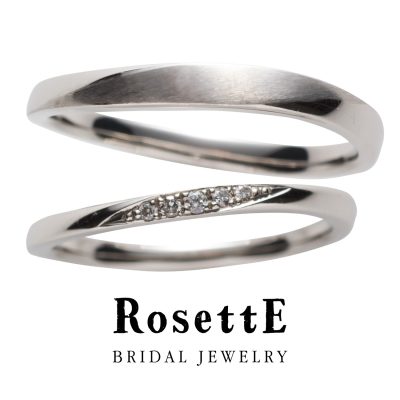 レディースリングは、さりげなく変化する月の光を、緩やかなS字で、指なじみ良く、優しく見えるように表現したデザイン。メンズリングは、中央のホーニング加工が影をイメージし、永遠に変わらない想いを表現したデザイン。 - [ER]
