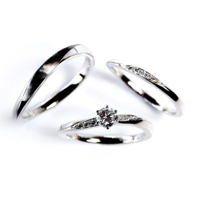 「夜空に一際明るく輝く月の光と、水面を走り2人をつつむ風」をイメージしたデザイン。 - センターダイヤモンドで辛く悲しい感情も暖かい光で包み込む満月の強いパワーを表現した婚約指輪。サイドのメレダイヤは水面に反射した光が、風と共に拡散した様を表現し、さりげない心豊かさを演出しています。