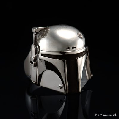 - 腕利きのバウンティ・ハンターとしてエピソード2・5・6に登場する「ボバ・フェット」をモデルにしたヘッドリング。凹みやサビなど細部にまで徹底的にこだわって表現しており、 どこから見ても精巧な造りを楽しめるリングに仕上がりました。ボリュームはありますが、着け心地を考え、手の平側のリング幅を抑えています。
