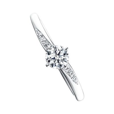- パヴェ ダイヤモンドが美しく煌めき、センターストーンの爪のアングルをラインに沿わせた、流れるような優美なラインが特徴です。