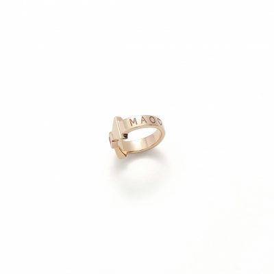 赤ちゃんの大切なお名前と、傍に寄り添うお守りアイコンが主役のベビーリングです。