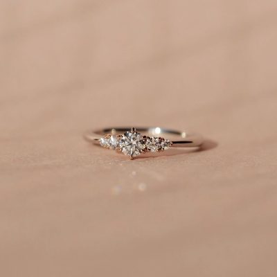 リングの真ん中には、ぎゅっと束ねられた5ピースのダイヤモンドは、甘く輝くブーケをイメージしています。