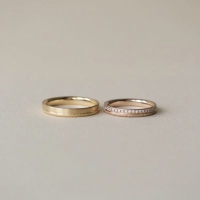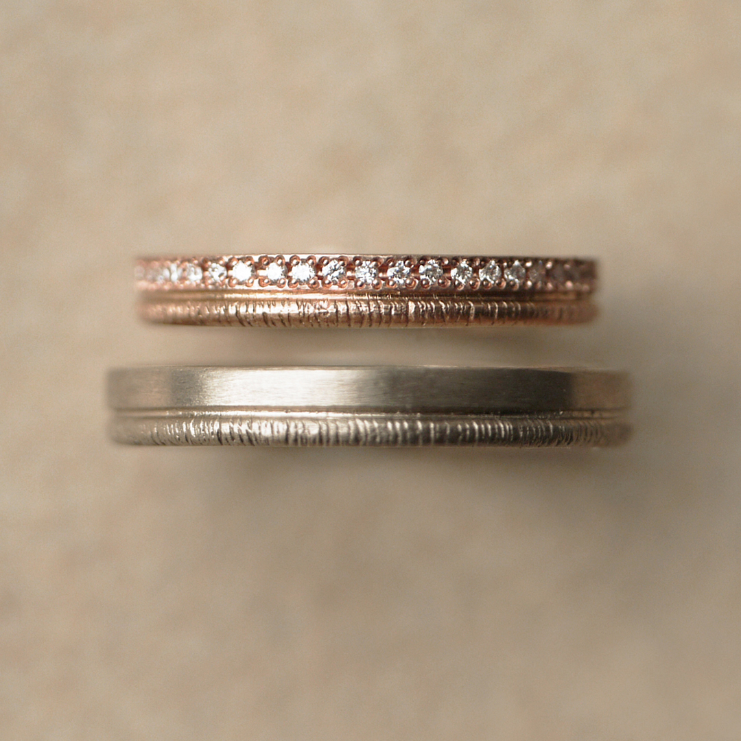 二層の仕上げが重ねづけしたような印象になるオシャレな結婚指輪です。