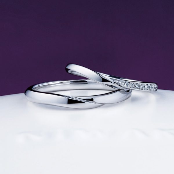 リングの緩やかなカーブは未来へと続く川の流れを、ダイアモンドは水面の輝きを表現。清らかな水の音のように穏やかな人生を歩むふたりをイメージしています。