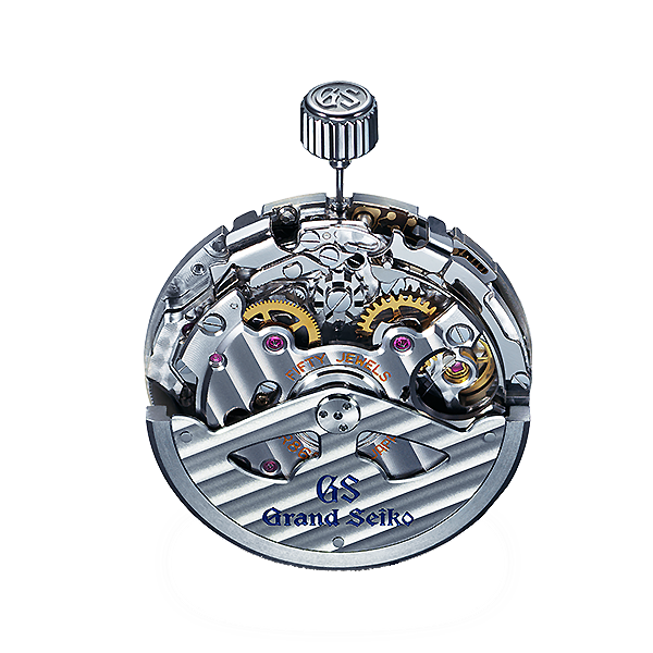 9Rスプリングドライブは、機械式時計のゼンマイがほどける力によって生じるトルクを原動力としながら、ICと水晶振動子によって正確に精度を制御する全く新しいクオーツの調速機構を備えたグランドセイコー独自のムーブメントです。