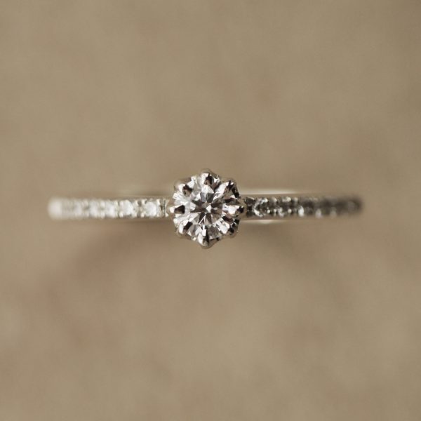 ダイヤモンドラインとは、指輪のアーム部分にメレダイヤモンド(小さなダイヤ)を連ねて留めたデザインのこと。