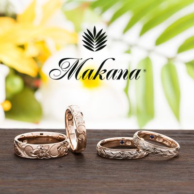 一生ものにふさわしい、結婚指輪に使えるハワイアンジュエリーというのが、Makanaだ。マカナはハワイ語で「贈りもの」という意味を持つ。ハワイアンジュエリーが持っている、結婚指輪にふさわしくない部分、安価で手に入りやすい素材、を変更し、K18やプラチナと言って、他のブライダルジュエリーで主流で使われている、変色しない、アレルギーの反応が起こりづらい貴金属を採用している。