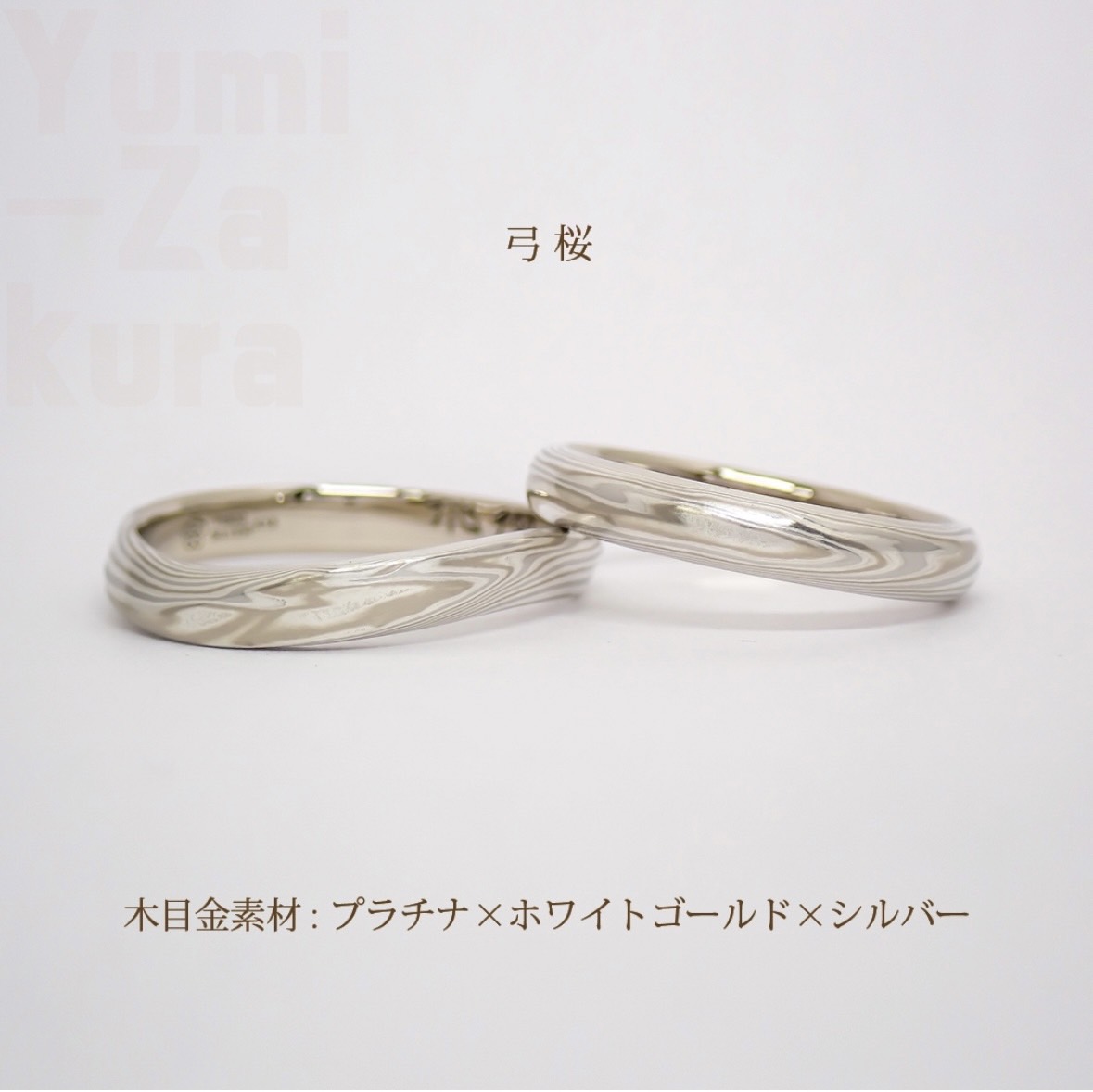 おふたり別々のシルエットがお好みの場合でも、同じ木目金の板から作成することでおそろいの色・つながる模様で絆を感じれるリングにすることができます!