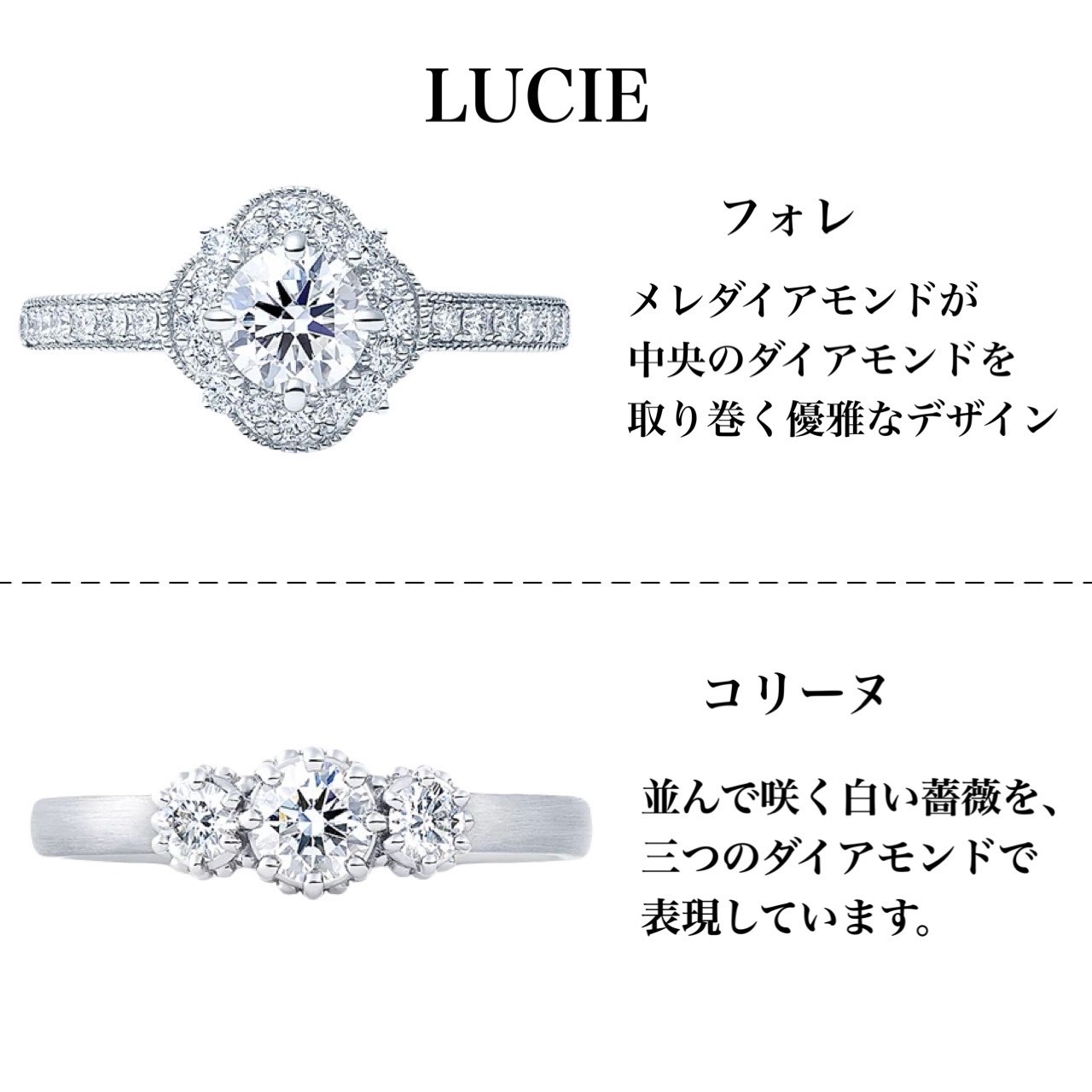 ”大人の可愛らしさ”とテーマに作られるLUCIE(ルシエ)の婚約指輪は、どれも華やかでこだわり感が強いです。