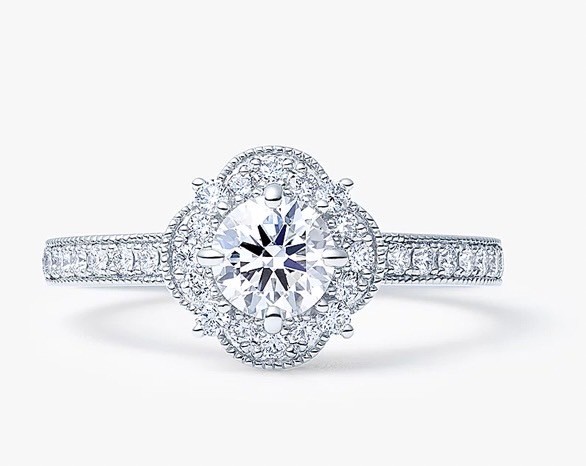 メレダイヤモンドが中央のダイヤモンドを取り巻く優美なデザインです。