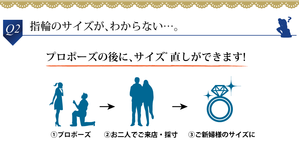 女性憧れのプロポーズと言えば、映画やドラマでも目にする「箱パカッ!」です♪ プロポーズの言葉とともに贈られるエンゲージリングは女性の何よりの憧れなのです。 さらに、彼女を喜ばせたいとの想いから、最近は彼一人でサプライズプロポーズをする方が増えているんですよ。 でも、いざ「エンゲージリング(婚約指輪)を贈ろう!」と、思っても、分からないことが沢山…。 そんな悩めるそこのあなたに…!