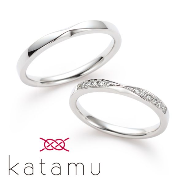 和の雰囲気が好きな方におすすめの鍛造製法ブランドは、「Katamu(カタム)」です。カタムの結婚指輪はふたりのご縁をしっかり「固む」、高い強度となめらかな着け心地をもつ一生ものにふさわしい鍛造製法の指輪です。カタムとは「固む」と書き、モノを固くする他に固く守る、固く誓うなどの意味を持っています。通常の鍛造の他に、プレス鍛造を採用することで、柔らかいフォルムと強度両方を実現したそうです。和の柔らかな雰囲気と丈夫さを合わせたカタムの結婚指輪はとてもおすすめです。