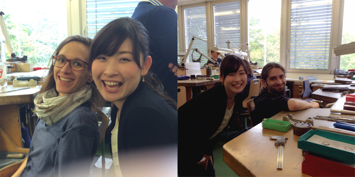 本日の体験はここまで。と言うことで、(左)別の部屋に行く前にブローチでもおなじみのクリスマスカードにサインをくれるゴールドスミスに遭遇!当然2ショット♡ゴールドスミスの資格者には女性も多いんですが皆さん美人。男性のゴールドスミスはイケメン♡この方たちが幸せなお二人のリングを一生懸命作っています!写真でしか見た事の無かったゴールドスミス達、なんだか有名人に会えた気分です!!