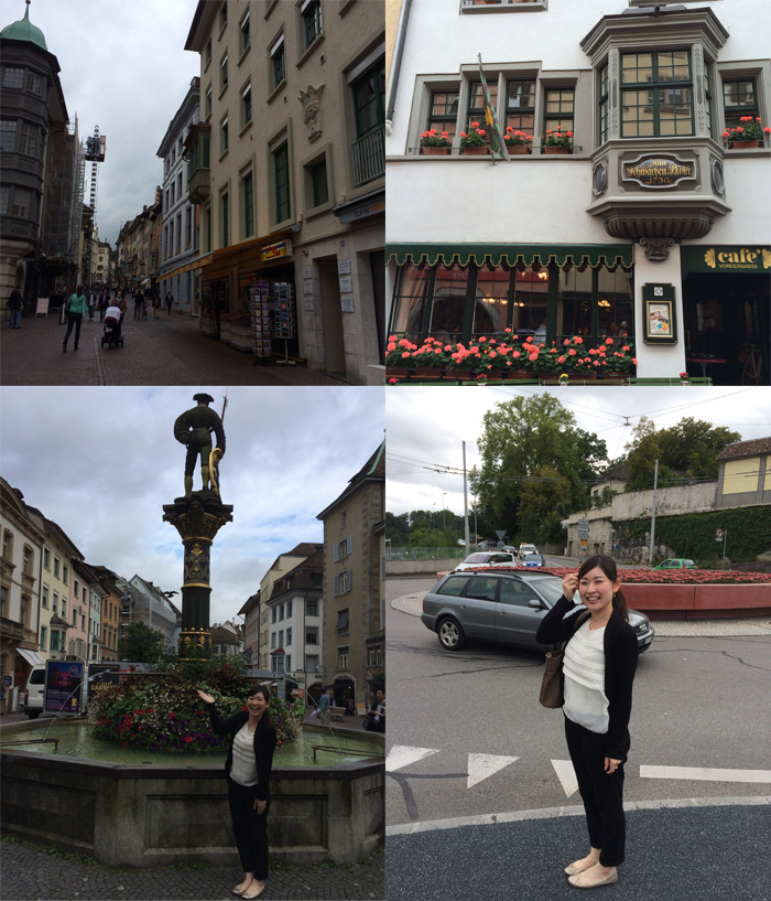 さて、私たちは夕方からシャフハウゼン市街にて自由時間。ライン河交易で古く中世の昔から栄えた美しい街並みを堪能しました。 ザンクト・ヨハン教会や、美しい壁画が描かれた騎士の家、市庁舎など、観光スポットは完全網羅しときました♪中世の建物が並ぶ町の中心にあるムノート城塞の上からは、ライン河や町を見下ろす美しい眺望を楽しむことができます。